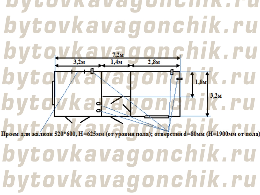 ГлавнаяПроекты Коммерческие предложения → Негабаритный вагончик 7,2м*3,2м под ремонтную мастерскую